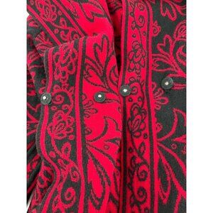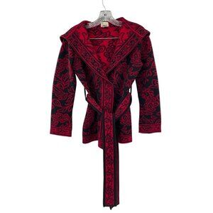 Neve Womens Hooded Knit Sweater Jacket With Belt - Size Small Red & Black Floral