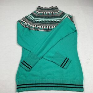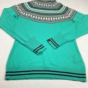 Neve Womens Merino Wool Sweater Fair Isle Nordic Teal Green Retro Pullover S