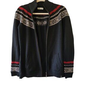 Neve Women's Nordic Wool Blend Full-Zip Sweater Jacket L Black Red Gray Pattern