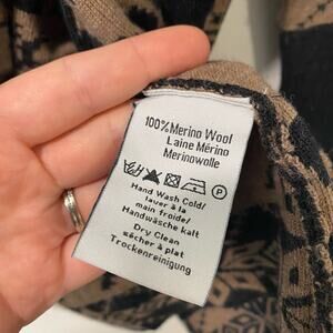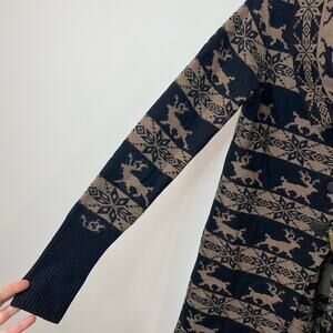 Neve Women's Sweater Coat Brown Black Merino Wool Toggle Buttons Deer Printed M