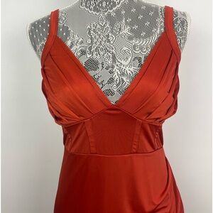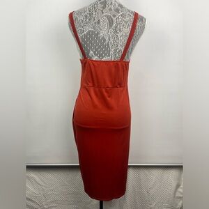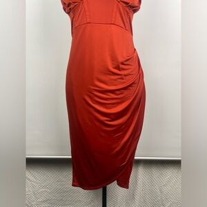 Nevena Rae Rust Red Plunge Rouched Hip Corset Style Bodice Dress