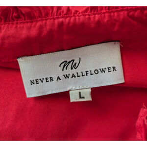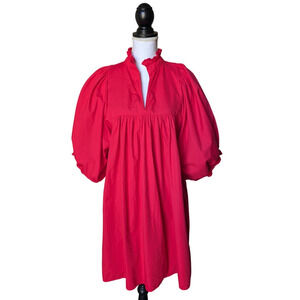Never A Wallflower True Red High Neck Ruffle Collar Poplin Mini Dress Sz Large