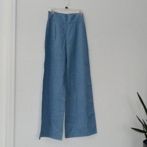 High-waisted, wide-leg palazzo pant in our newest Light Blue Denim Fabric! These pants are oh-so comfortable and have stretch! The wide waistband is perfect for tucking in a shirt and putting your own flair to the look! The pants have a center-back zipper closure. You are all set for your next getaway!