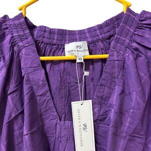 Never A Wallflower Marakesh Blouse Short Puff Sleeves Crop Top Size XS Purple