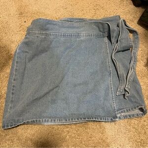 Chic denim mini skirt with wrap design. Perfect for casual wear. Easy to style.