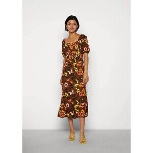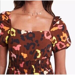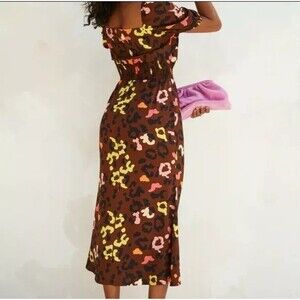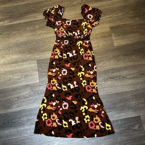 Never Fully Dressed Brown Animal Print Clara Midi Dress in excellent condition. Flattering dress with a Square Neck in size 4.