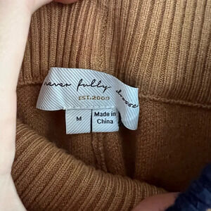 Never Fully Dressed Dana knitted wide leg jogger co-ord in camel | Size M