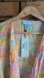 Features: Deep V-neck, vibrant multicolor print, metallic gold stitching