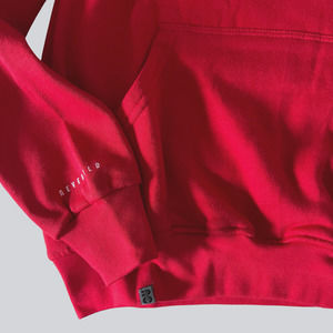 Never Old "Write Your Own Story" hoodie sweatshirt in red. This hoodie features "Write Your Own Story" on front & "Birth of Venus- Botticelli" graphic w/"Write Your Own Story" phrase on back. It has an adjustable drawstring hood, ribbed cuffs/waistline & cuffed wrists/elasticized waistband. This is a limited run by an Egyptian designer/brand.