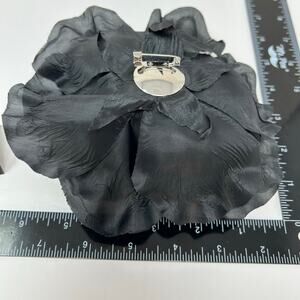 Never Used Joan Rivers Brooch Pin Flower Black Silk Fabric Large With Box Classy