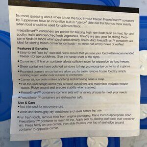 No more guessing about when to use the food in your freezer. Tupperware FreezeSmart Containers have an innovative built-in "use by" date dial that lets you know exactly when food should be used for optimum flavor. These containers are perfect for freezing fresh raw foods such as meat, fish and poultry, fruits and blanched fresh vegetables. They're also great for storing these kinds of foods when purchased already frozen.