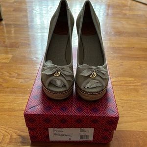 Never Worn 110mm Tory Burch Jackie Wedge Espadrille Peep Toe Sandal Size 8 w/box