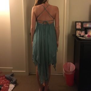 Teal multi-layer dress with strappy/crisscross back and beaded trim. BCBGMaxAzria, never worn