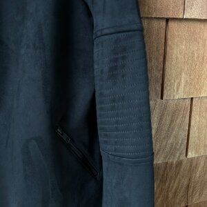 In Excellent, Never Worn Condition! Bold Black Betabrand Vegan Suede Moto Jacket in Women's Size XXL - Soft and Comfortable Moto Jacket with asymmetrical zipper, two front zipper pockets and moto stitch detailing on the arms and shoulders. Perfect jacket for travel too.