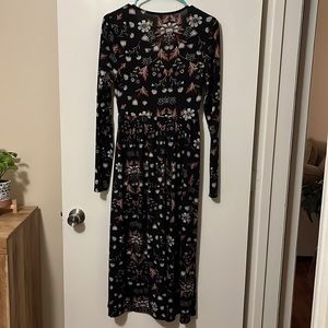 Never Worn Black and Floral Dress by xhileration. Tie Up Front. Long Sleeved. Above Ankle Length
