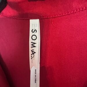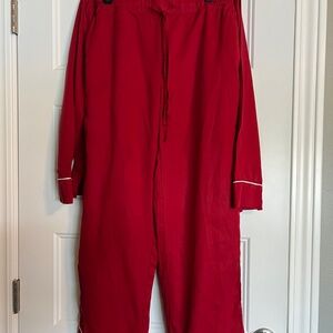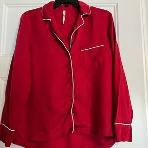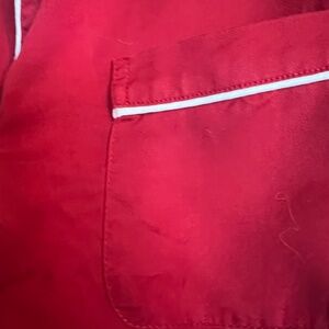 Cozy and classic Soma two-piece pajama set in bright red with white piping. Soft and lightweight fabric makes this set perfect for lounging or sleeping in comfort.