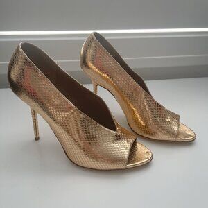 Never Worn Gold Burberry "Snake Skin" Leather Heels