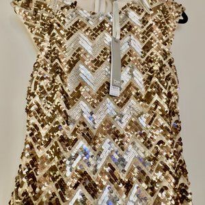 Never Worn Round Neck Beaded Gold Cocktail Dress