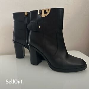 Never Worn Tory Burch Women's Black Leather Ankle Booties Size 6 Block Heel