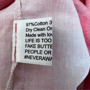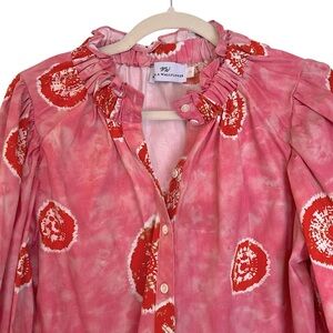 Never a Wallflower Cotton Boho Block Print 3/4 Sleeve Blouse Pink Red Small