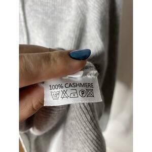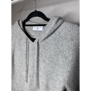 Never a Wallflower Women's Large Sweater 100% Cashmere Ribbed Gray Hoodie Hood.