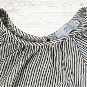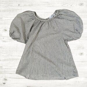 Never a Wallflower XS Puff Sleeve Stripe Grey and White Top