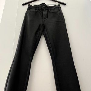 Never been worn (no tags), PAIGE Hoxton Ankle, mid rise ankle length jeans with black fog luxe coating (appears with a leather-like sheen). Size 25
