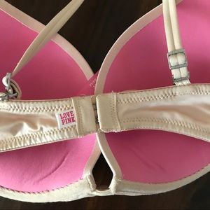 Never been worn! Victoria’s Secret PINK plunge push-up bra in cream. Convertible to racerback style. Very comfortable and versatile bra! Excellent condition, fits true to size. Size 32D.
