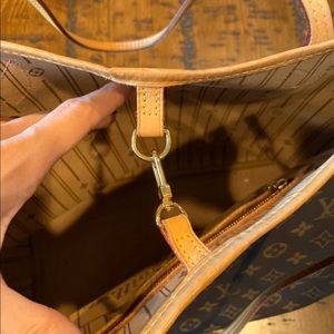 Very good used condition. Honey patina in vachetta, small liquid stain on interior, light creasing and dirtiness on vachetta, no foul odors. Includes bag only.