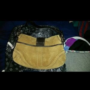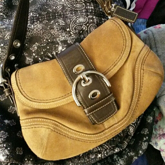 Used authentic Coach purse, in great condion, was kept in a dry closet and has never gotten wet, no wear marks and the clasp still closes, has adjustable strap. Color is accurate in picture!