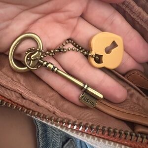 Never used brown and cream fossil bag from around 2014ish. Keyrings inside, chunky antique gold zippers, fabric strap with leather attachments, zip outside pocket, zip inside pocket, card pockets inside. Really great bag that I never wear.