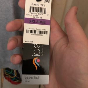 Never warn workout basic tee. Still has tags. I do not think it is true to size, the ACTUAL fit is probably a large/small extra large. Feel free to ask me any questions. Smoke free household