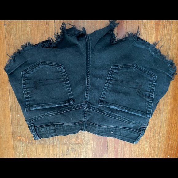 Black hi-rise AE distressed shorts