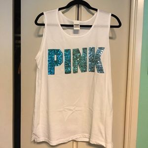 This White tank top with blue sequins is in perfect condition and has never been worn.
