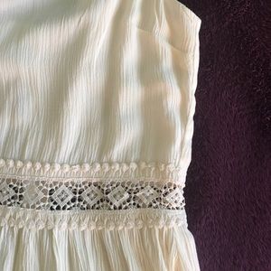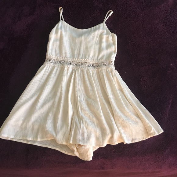 Cream spaghetti strap romper with lace midriff