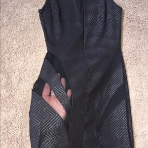 Lbd - little black dress with mesh see through hip/thigh skits and top cleavage. Just above knee size small bod con type fit
