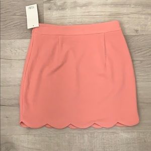 Brand new salmon-colored, scalloped-bottom mini skirt!