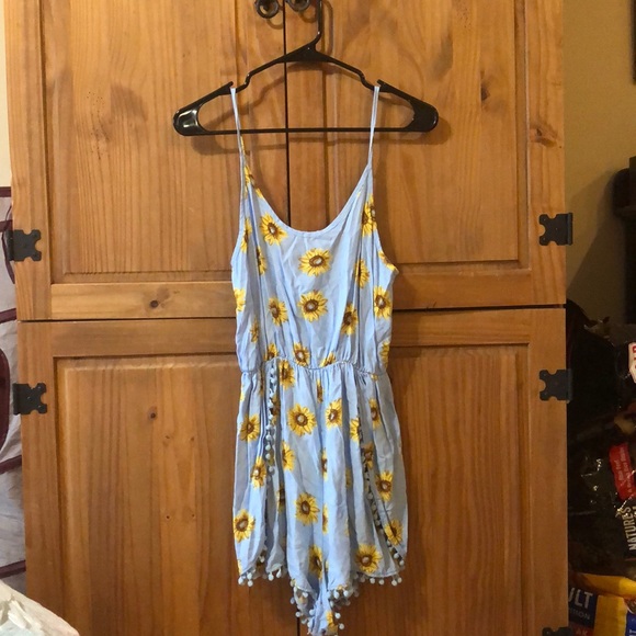 Light blue sunflower romper, thinner material but still looks nice on. Zipper on the back