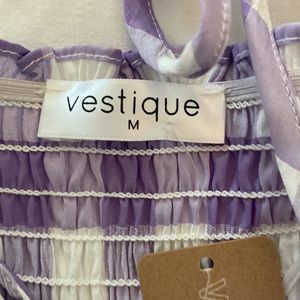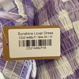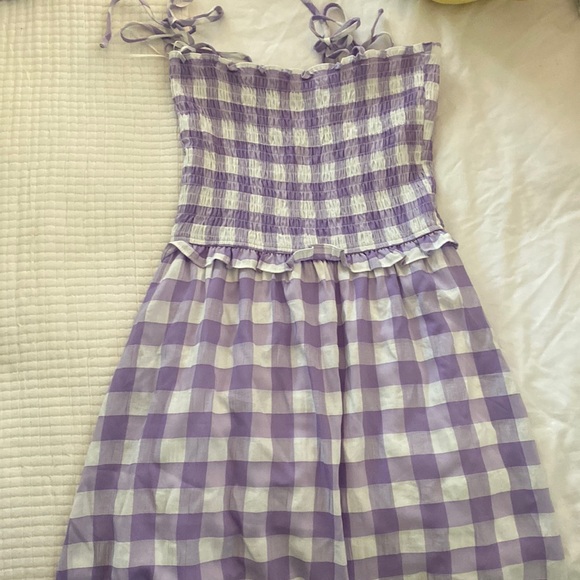 Mini dress purple and white plaid never worn with tie shoulders and liner