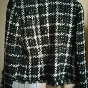 Beautiful never worn black and white wool fringed Blazer. This is a size 44, I wear a 12