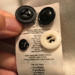 The blazer is made of wool with cotton-polyester lining material. It has a collared neckline, taped seams, padded shoulders, and shoulder pads. Additionally, it is single-breasted, has a logo accent, and features surgeon's cuffs. The blazer is easy to maintain and should be dry cleaned only. The garment is designed for all seasons and perfect for the American classic theme.