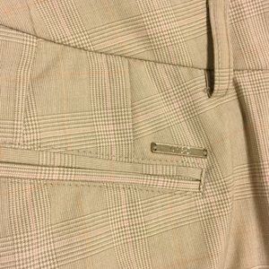 Never worn before New York and company pants. Beautiful patterned tan and pink lines work tan pants. Size: 0, 'average' height (33 inseam), boot cut.