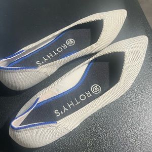 Both pairs never worn, tan pointed toe Rothy’s flats.