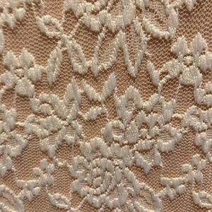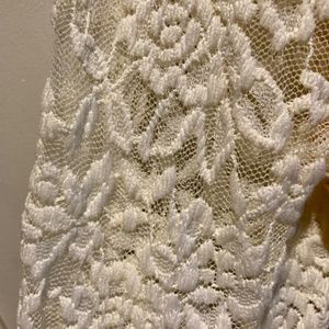White lacy overlay fitted dress. Never worn. Size S. Slit on left knee. Non smoking home. Sold as is. ask if questions.