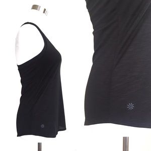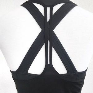 Never worn. Stylish black tank top. Features intricate strappy back design. Perfect for workouts and casual wear. Dress it up for dates or other special occasion with a fancy skirt or pants and/or accessories