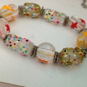 Gorgeous glass bracelet with aquatic theme! Handmade! I got this in Jamaica at a market!