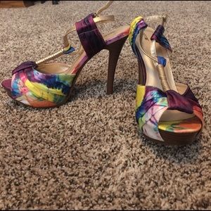 Super cute rainbow heels with gold straps. I never found the right occasion to wear them, sadly!