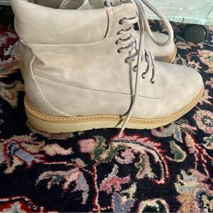 Beautiful light grey White Mountain boots from the Cliffs collection in size 10 medium. They feel like suede but are vegan. These have not been used . Small spot, see picture. Is not very noticeable. Excellent condition.