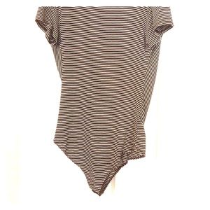 Never worn! Black and white striped shirt with snaps at the bottom.