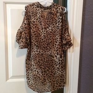 This shirt looks so good on😍. Animal print and cut off shoulders, with a little knot in the front bottom. It's also very comfortable. Considering it's loose and flowy.Pair this shirt with some leggings and cute shoes and ur good to go!